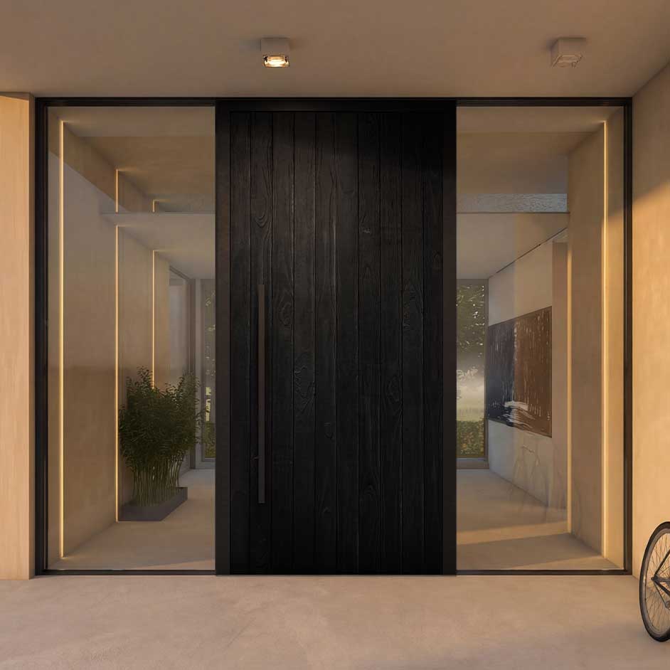 Jede FENNEN Pivot entsteht projektbezogen – abgestimmt auf Architektur, Maßstab und Persönlichkeit. Breite und Höhe jenseits des Üblichen machen den Eingang zur architektonischen Geste mit Präsenz und Ruhe.