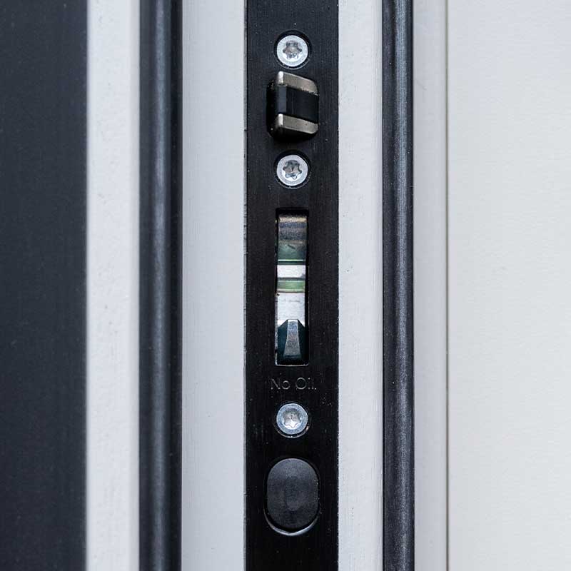 Eingesetzt werden FUHR Automatik-Mehrfachverriegelungen autosafe 835 mit autotronic Motorantrieb. Die beidseitige, motorische Verriegelung bietet hohen Einbruchschutz, komfortable Öffnung und sicheren Verschluss. DuoSecure-Schwenkriegel und zusätzliche Fallenbolzen sorgen für hohen Dichtschluss.